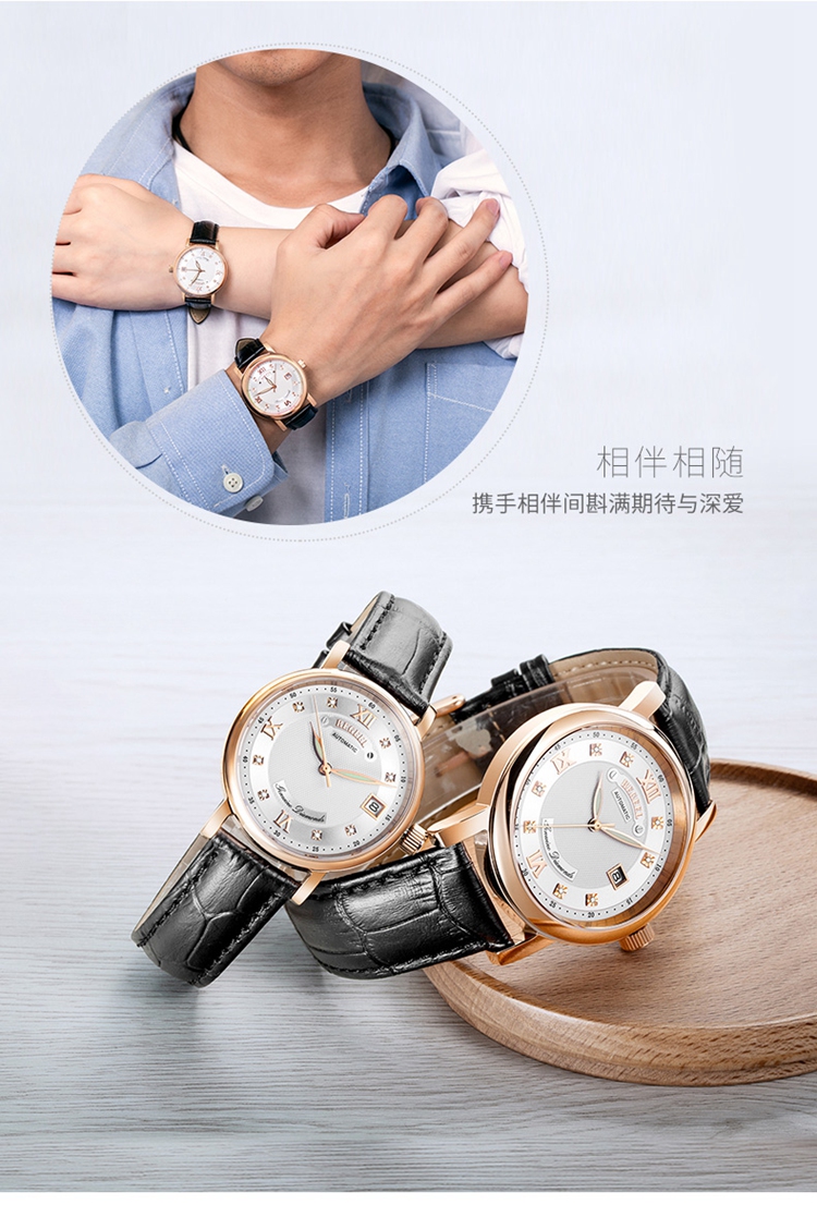 <<< 掃碼關注,GET明星同款情侶手表這個詞來源于近年來的趨勢。情侶選擇愛情禮物,愛情的象征。在選擇手表,時,他們通常會選擇款式相似、風格相同的手表。兩個人穿起來,視覺效果和心理感受都很好。它隨著時間的推移而傳播,已經成為非常受歡迎的手表。
