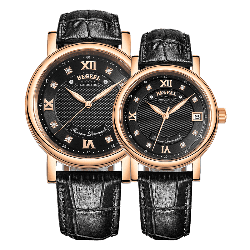 這張情侶桌屬于典型的風(fēng)格相同、造型不同、品牌不同的情侶桌。男表優(yōu)雅紳士,女表優(yōu)雅溫柔。但他們的共同點(diǎn)是低調(diào)有品位。這對夫婦手表的主色調(diào)是黑色和灰色。表盤簡潔優(yōu)雅,為白色。為了凸顯女性氣質(zhì),女表的表盤上標(biāo)注了羅馬數(shù)字,而橢圓形圓形表盤的表冠則是圓形的,上面鑲嵌了一顆圓形的鉆石,搭配絲帶表帶,盡顯女性嫻靜優(yōu)雅的氣質(zhì),非常適合東方女性佩戴。此外,男表是機(jī)械表表,表底是透底表,表,因此可以清楚地看到精美的機(jī)芯。